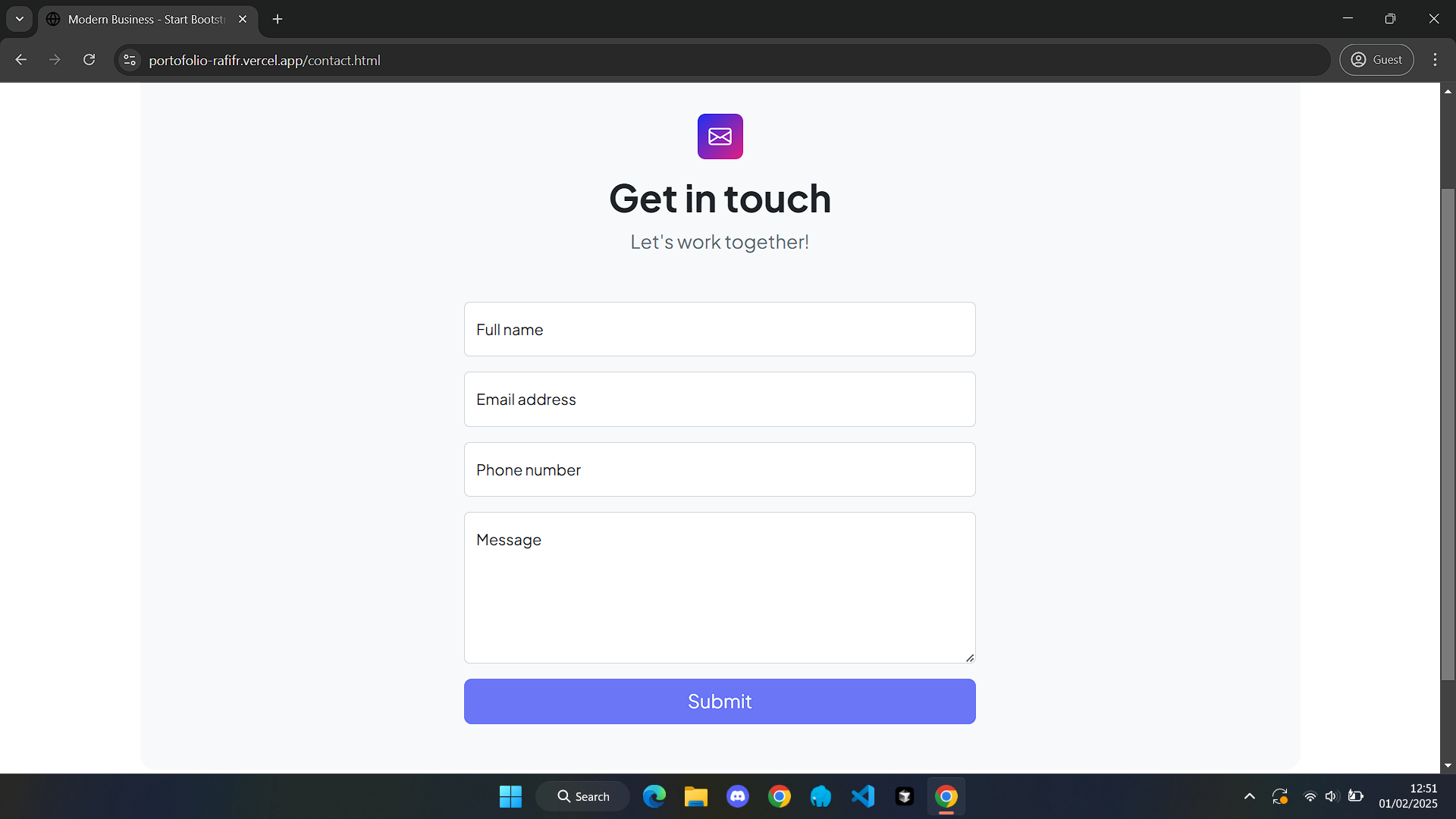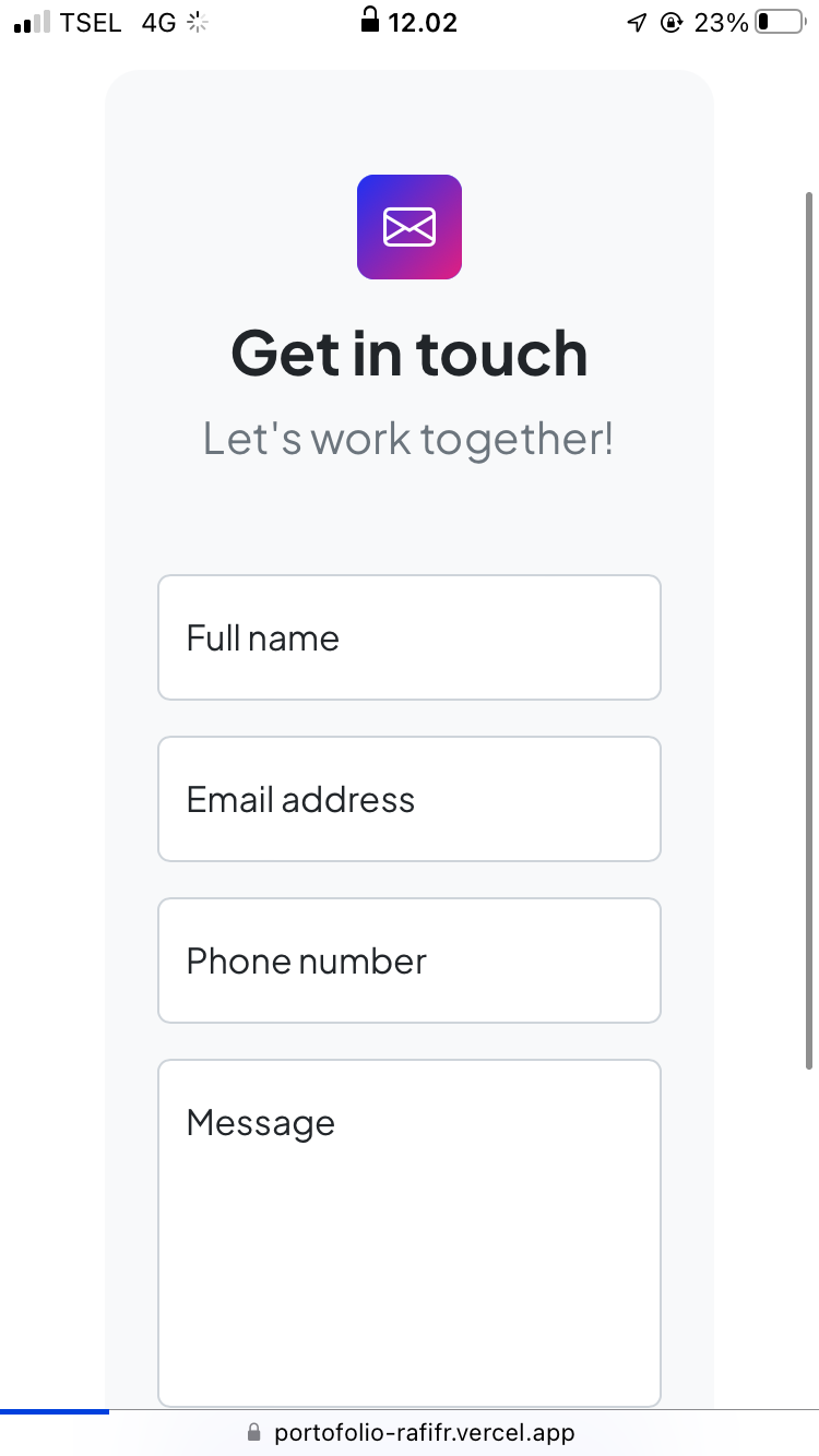 Untuk membuat sebuah proyek, saya tidak bisa mengerjakannya sendiri. Saya membutuhkan bantuan dari orang lain, dan saya harus berkomunikasi dengan mereka. Saya harus menjelaskan apa yang saya inginkan, dan apa yang saya butuhkan. Saya harus mendengarkan masukan mereka, dan saya harus menjelaskan apa yang saya lakukan, saya menyediakan halaman kontak untuk kolaborasi dan komunikasi bersama saya.